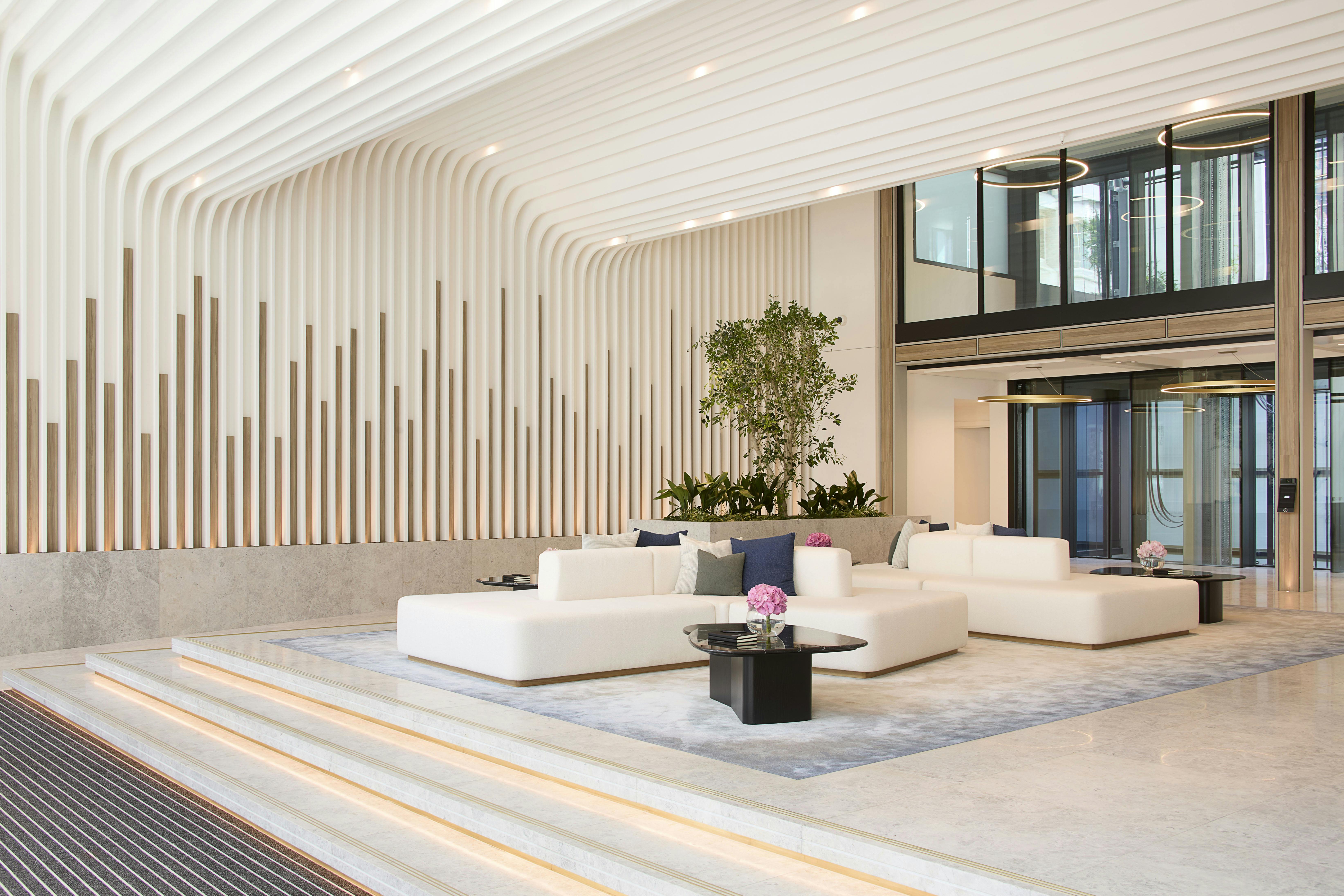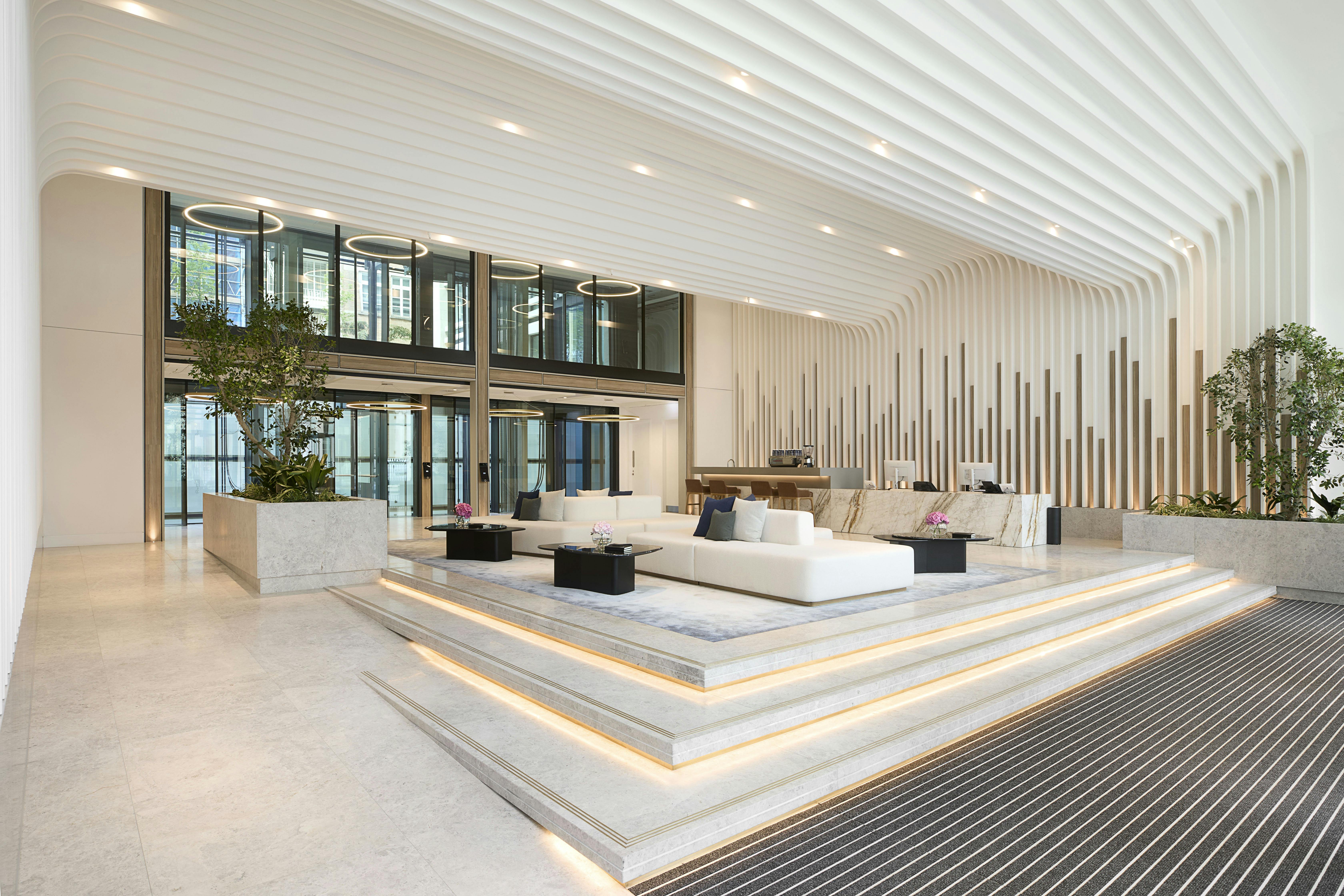 - 2,700 sq ft double-height lobby linked to central atrium